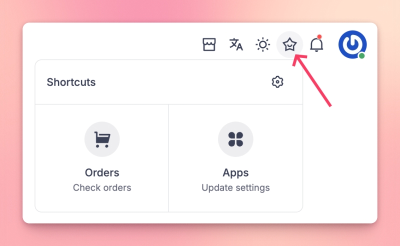 Add custom shortcuts in the top navigation bar for the pages you use most. Create links with a title and icon, reorder them with drag-and-drop, and they appear right in the navbar for you and your team.